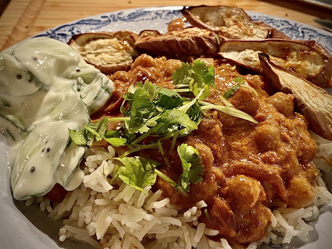 This idea was inspired by the NYT Cooking, but whereas they suggest canned chickpeas, I thought pressure-cooked ones would work better as I can decide how soft they should be. This time, I also forgot the ginger but it was delicious anyway. I also used crushed tomatoes instead of whole, as I didn’t have any. I’ll try to stick to those next time, as it might give a better structure.