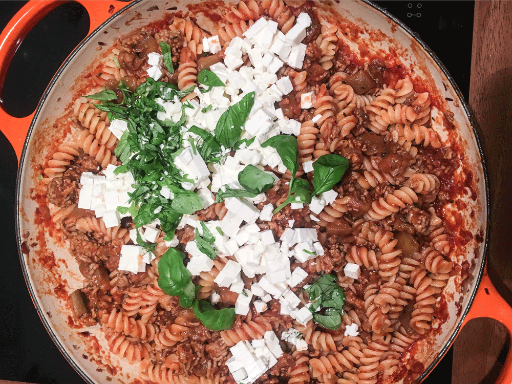 - When cooked, reserve some of the cooking water, drain pasta and add to the sauce